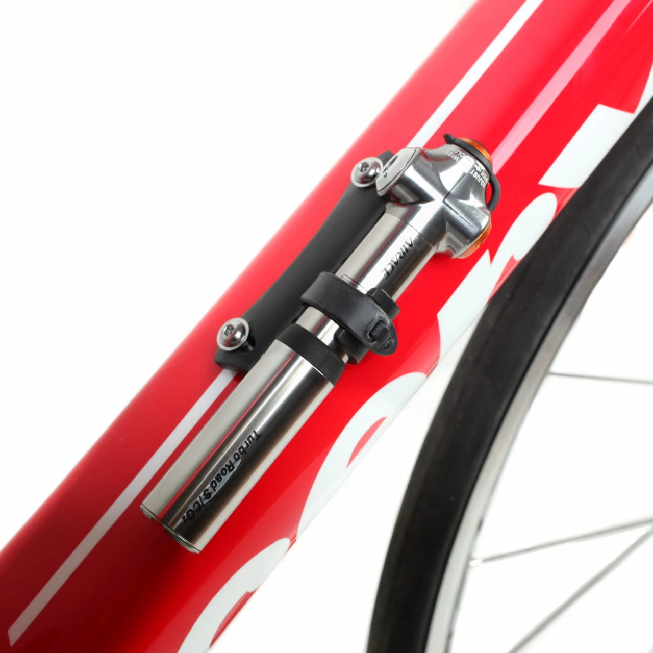 Die Luftpumpe kann ganz einfach mit der Halterung seitlich neben dem Trinkflaschenhalter angebracht werden. Damit kann die Pumpe platzsparend immer mitgenommen werden.