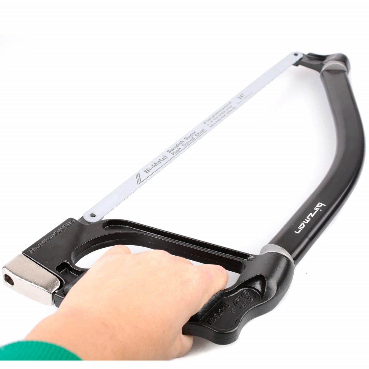 Auch wenn diese 12-Zoll (30,5 cm) – Bügelsäge sicher kein reines Biketool ist, fügt sie sich dennoch gut in das hochwertige Birzman-Werkstattangebot ein. Serienmäßig mit einem Metallsägeblatt aus widerstandsfähigem Bimetall ausgestattet, ist sie ideal zum Bearbeiten von Metallplatten oder -Röhren. Die Spannung des Sägeblattes ist dabei einstellbar. Die Grifffläche ist ergonomisch geformt und mit Anti-Rutschbelag beschichtet – für präzises und sicheres Arbeiten. Interessant für die Bauwerkstatt: Das reguläre Sägeblatt kann gegen ein Carbon-Sägeblatt ausgetauscht werden.