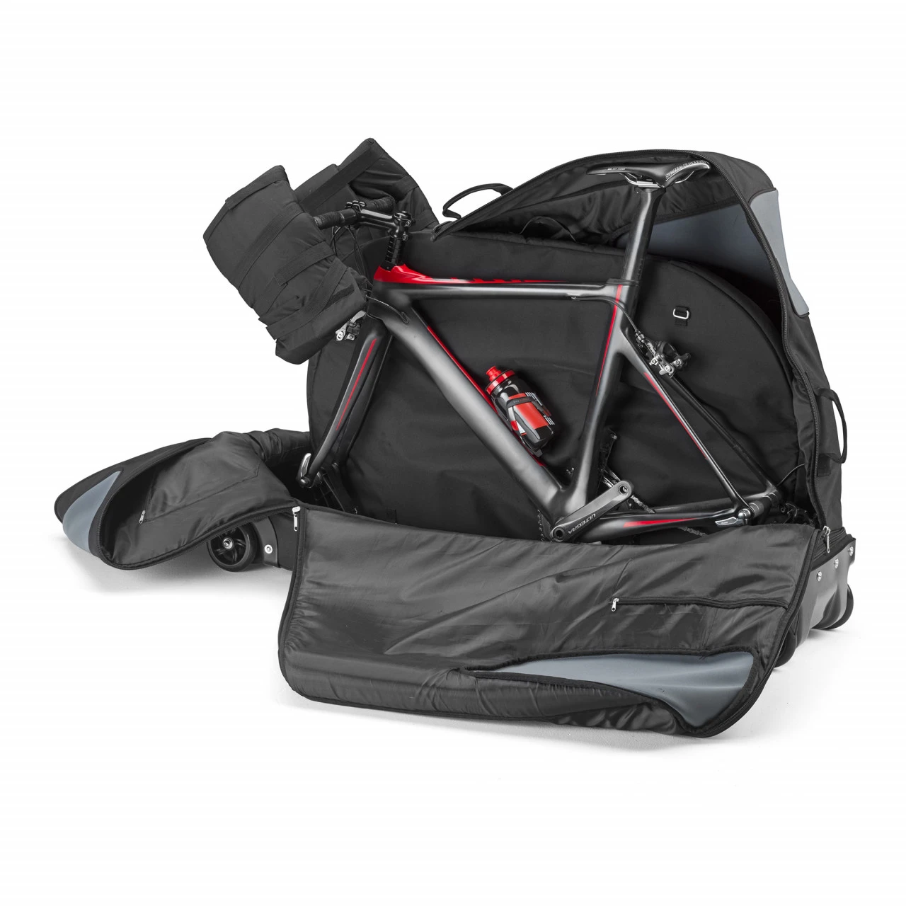 Ein wichtiger Punkt, der für eine Kombination aus Soft- und Hardcase spricht ist der geringe Platzbedarf, wenn du die Tasche nicht benötigst.Ist kein Bike in der Tasche, liegt das weiche Oberteil auf dem festen Unterteil und somit brauchst du nicht viel Platz um die Tasche zu lagern.Das ist nicht nur zu Hause praktisch sondern insbesondere in kleinen Hotelzimmern von Vorteil.