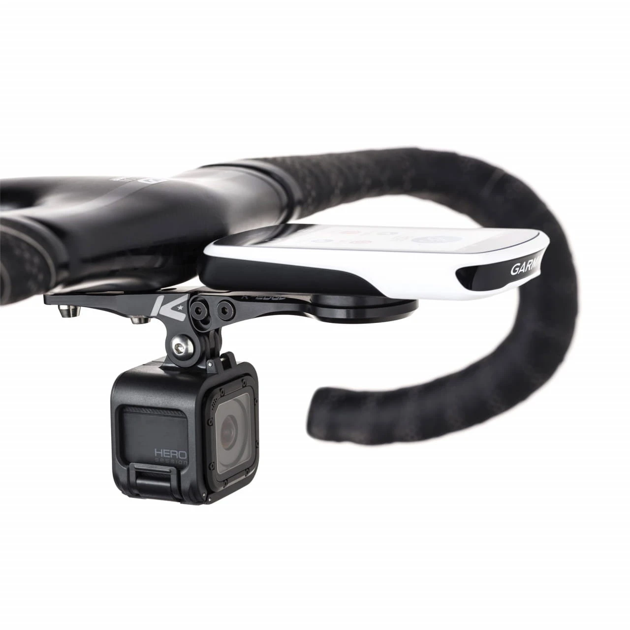 Die spezielle Form der K-Edge Halterung ermöglicht es, den Bike-Computer sowie eine Action-Kamera oder Zusatzbeleuchtung mittig vor dem Lenker zu platzieren. Das sieht schick aus und ist aerodynamisch vorteilhaft. Je nach Bedarf kannst du die Halterung zudem um bis zu -7 Grad neigen.