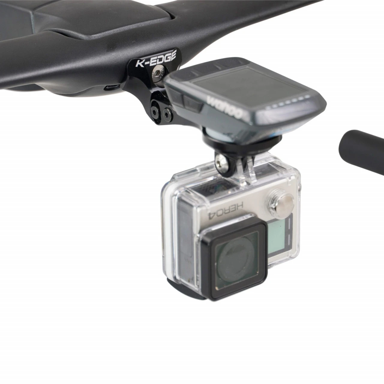 Die spezielle Form der K-EDGE Halterung ermöglicht, den Fahrrad-Computer mittig vor dem Lenker zu platzieren – ideal, um alle Infos während der Fahrt einfach ablesen zu können. Das sieht nicht nur sehr gut aus sondern ist auch aerodynamisch von Vorteil. Je nach Bedarf kannst du die Halterung zudem auch um bis zu -7 Grad neigen. Der von Wahoo zugelassene und austauschbare Computereinsatz schützt die Befestigungspunkte auf der Rückseite des Computers. Am GoPro-Anschluss auf der Unterseite kannst du die Actioncam oder beispielsweise Lampen befestigen, die denselben Anschluss haben.