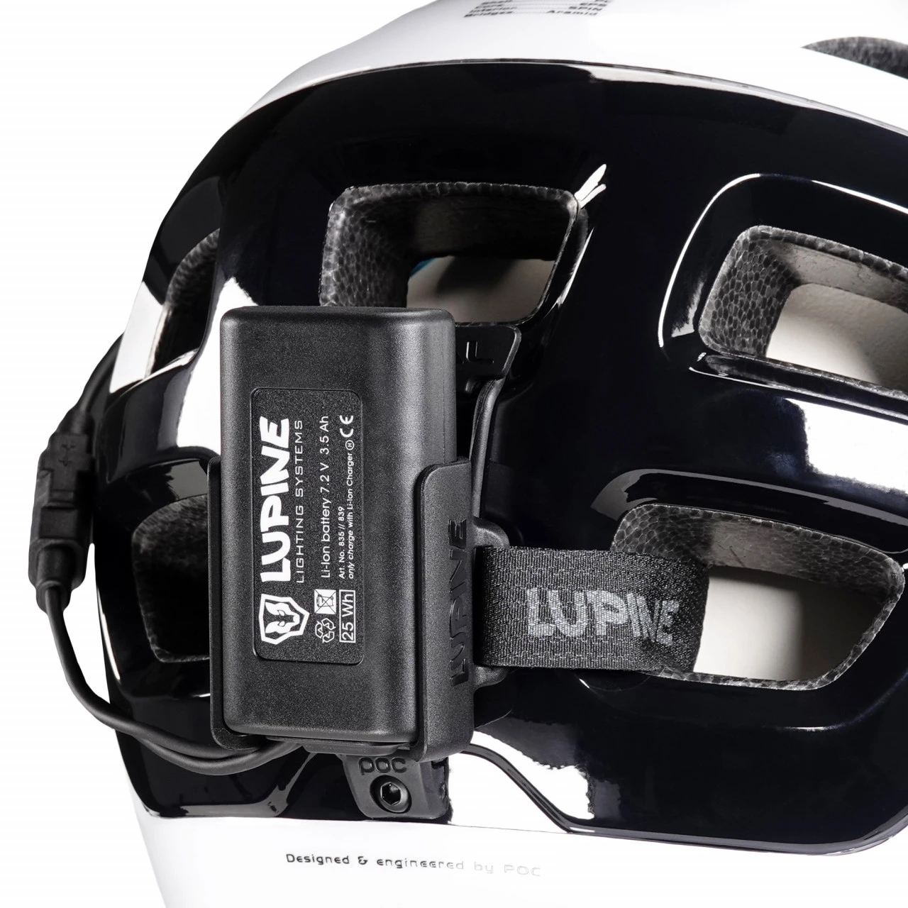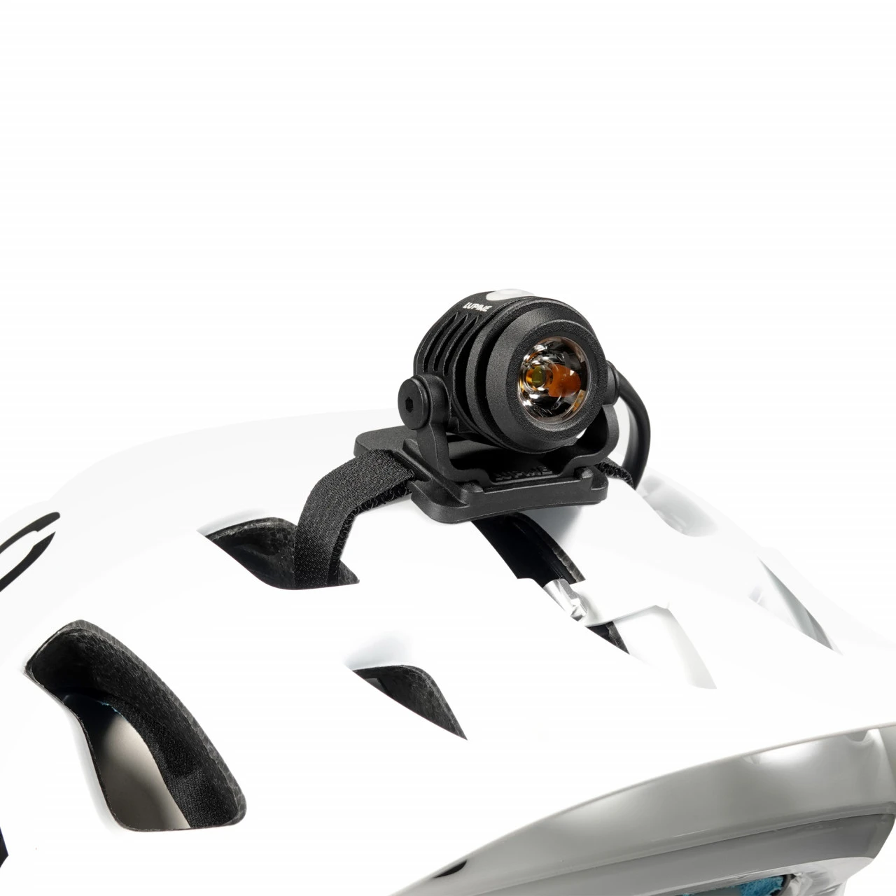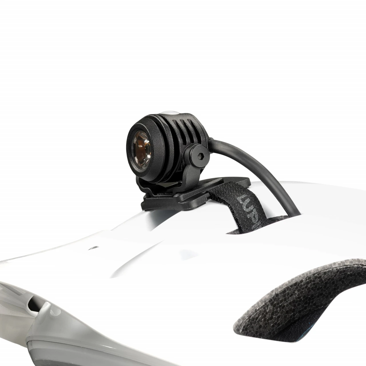 Trotz der nur 50 Gramm Gewicht liefert die kleine Helmlampe zusammen mit dem 25 Wh/3,5 Ah starken Akku bis zu 1000 Lumen Lichtstärke und hält auf kleiner Leuchtstufe bis zu 80 Stunden durch. Bei Maximalstufe reicht die Energie für 2,3 Stunden.