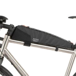 Die Frame Bag des britischen Herstellers Restrap wird per Klettverschluss-Riemen zwischen Oberrohr und Unterrohr befestigt und ermöglichtden direkten Zugriff auf Smartphone, Werkzeug, Verpflegung oder Zubehör. Die robusten und wasserfesten Materialien sowie der abgedichtete Reißverschluß sorgen dafür, dass der Tascheninhalt immer trocken bleibt – schließlich wurde die Frame Bag von Restrap im regnerischen Yorkshire entwickelt und ausgiebig getestet.