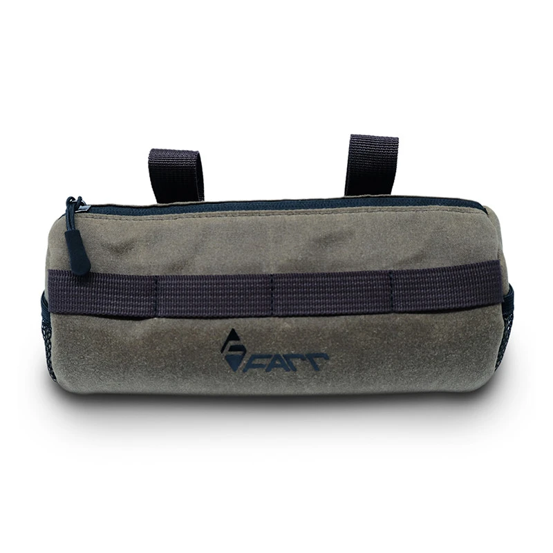 Leichte Lenkertasche für den Alltag und Bikepacking-Touren. Zwei kleine Mesh-Fächer an den Seiten ermöglichen schnellen Zugriff auf Kleinigkeiten während der Fahrt.