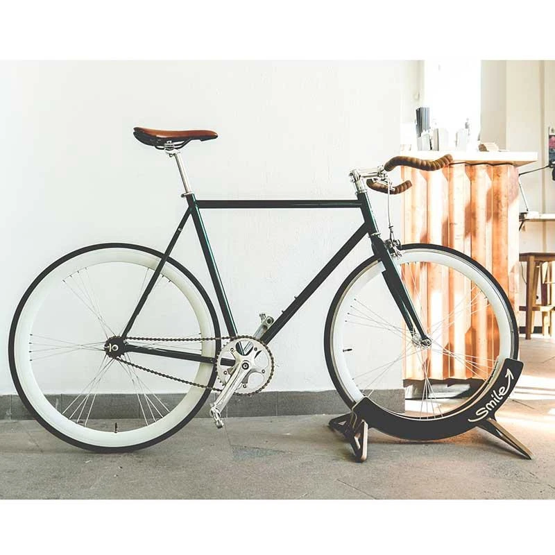 Die Anmutung von Holz und auch die Stabilität von Holz machen diesen Ständer zu einem echten Hingucker. Er steht sehr stabil und trotzdem kommt das Bike optisch zur Geltung. Man kann einfach das Hinterrad oder Vorderrad hineinschieben und das Rad steht stabil. Die Weite des Reifens lässt sich in kleinen Schritten einstellen, je nach dem welche Einschübe man benutzt und wenn man die Teile anders herum einsetzt (rechts/links) gibt es einen weiteren cm zum Einstellen.